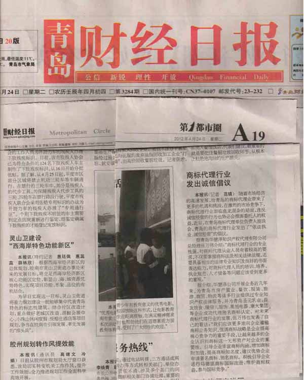 青島財經日報就商標代理行業 發出誠信倡議采訪了我公司