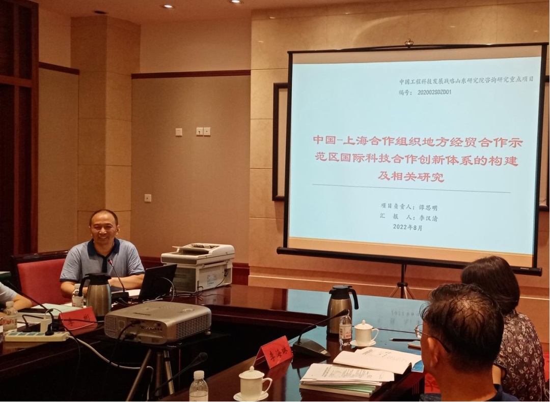 2022年8月8日,中國工程科技發(fā)展戰(zhàn)略山東研究院在青島組織召開了“中國-上海合作組織地方經(jīng)貿(mào)合作示范區(qū)國際科技合作創(chuàng)新體系的構(gòu)建及相關(guān)研究”項目綜合績效評價會。