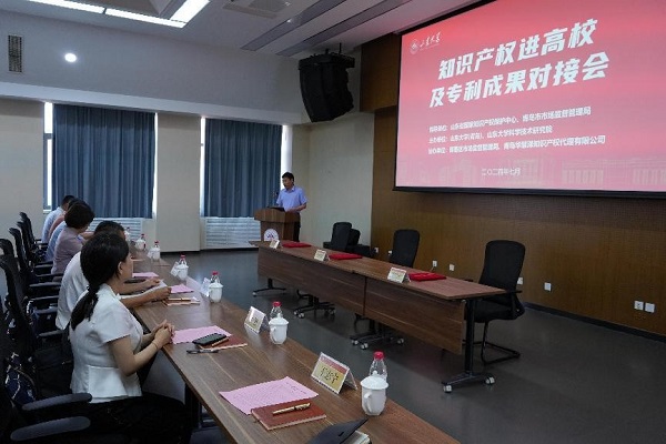 7月10日,由山東省國(guó)家知識(shí)產(chǎn)權(quán)保護(hù)中心、青島市市場(chǎng)監(jiān)督管理局指導(dǎo),山東大學(xué)(青島)、山東大學(xué)科學(xué)技術(shù)研究院主辦,青島市即墨區(qū)市場(chǎng)監(jiān)督管理局、青島華慧澤知識(shí)產(chǎn)權(quán)代理有限公司協(xié)辦的“知識(shí)產(chǎn)權(quán)進(jìn)高校暨專利成果對(duì)接會(huì)”在山東大學(xué)青島校區(qū)成功舉辦。會(huì)前,山東大學(xué)校長(zhǎng)李術(shù)才與青島市市場(chǎng)監(jiān)督管理局局長(zhǎng)張?jiān)佈銜?huì)面,親切交談。青島校區(qū)黨工委副書記宋作標(biāo)致歡迎辭,青島市市場(chǎng)監(jiān)督管理局局長(zhǎng)張?jiān)佈?、山東省國(guó)家知識(shí)產(chǎn)權(quán)保護(hù)中心副主任尹強(qiáng)民出席活動(dòng)并致辭。青島市市場(chǎng)監(jiān)督管理局知識(shí)產(chǎn)權(quán)促進(jìn)處處長(zhǎng)欒華、知識(shí)產(chǎn)權(quán)保護(hù)處副處長(zhǎng)安鍇,國(guó)家知識(shí)產(chǎn)權(quán)局戰(zhàn)略規(guī)劃司二級(jí)主任科員蘇強(qiáng),山東省國(guó)家知識(shí)產(chǎn)權(quán)保護(hù)中心預(yù)審一部部長(zhǎng)牟若楠,青島市即墨區(qū)市場(chǎng)監(jiān)督管理局副局長(zhǎng)刁艷艷、知識(shí)產(chǎn)權(quán)科科長(zhǎng)喬杰先,青島華慧澤知識(shí)產(chǎn)權(quán)代理有限公司董事長(zhǎng)張萬(wàn)偉出席,青島校區(qū)科研管理辦公室副主任兼科學(xué)技術(shù)研究院副院長(zhǎng)王志寧主持活動(dòng)。山東大學(xué)科學(xué)技術(shù)研究院、技術(shù)轉(zhuǎn)移中心、青島校區(qū)科研管理辦公室負(fù)責(zé)人及相關(guān)人員,部分學(xué)院領(lǐng)導(dǎo)及專家代表,創(chuàng)新型企業(yè)負(fù)責(zé)人,共80余人參加活動(dòng)。