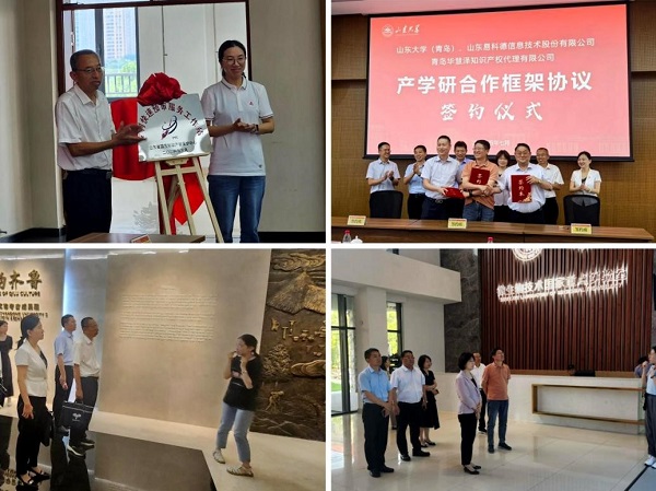 隨后,舉行了專利快速預(yù)審服務(wù)工作站揭牌儀式、產(chǎn)學(xué)研合作框架協(xié)議簽約儀式等活動(dòng)。青島市市場(chǎng)監(jiān)督管理局知識(shí)產(chǎn)權(quán)促進(jìn)處處長(zhǎng)欒華、山東省國(guó)家知識(shí)產(chǎn)權(quán)保護(hù)中心預(yù)審一部部長(zhǎng)牟若楠、青島華慧澤專利代理事務(wù)所合伙人賀敬虹、國(guó)家知識(shí)產(chǎn)權(quán)局戰(zhàn)略規(guī)劃司蘇強(qiáng)圍繞國(guó)家及山東省、青島市知識(shí)產(chǎn)權(quán)相關(guān)政策、高價(jià)值專利培育進(jìn)行了宣講,山東大學(xué)計(jì)算機(jī)科學(xué)與技術(shù)學(xué)院宣東教授團(tuán)隊(duì)陳竹軍推介了人機(jī)智能系統(tǒng)研究專利成果。