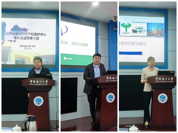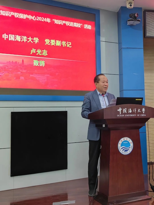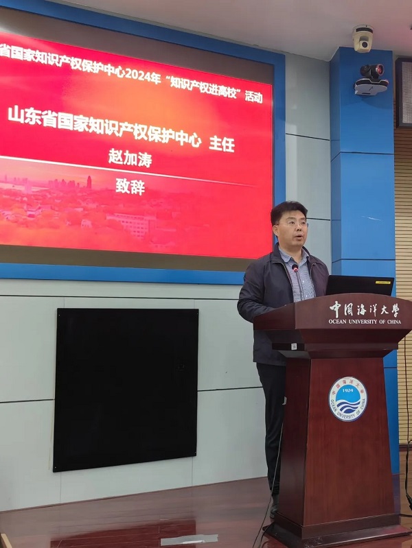 4月25日,宣傳周主題活動——山東省國家知識產(chǎn)權(quán)保護中心“知識產(chǎn)權(quán)進(jìn)高校”在嶗山校區(qū)成功舉辦。中國海洋大學(xué)黨委副書記盧光志,山東省國家知識產(chǎn)權(quán)保護中心黨總支書記、主任趙加濤出席活動并致辭。青島市知識產(chǎn)權(quán)保護中心主任郭大鵬、青島市市場監(jiān)督管理局知識產(chǎn)權(quán)運用促進(jìn)處處長欒華、國家級知識產(chǎn)權(quán)保護中心(青島)建設(shè)工作領(lǐng)導(dǎo)小組辦公室執(zhí)行副主任鄭昆、嶗山區(qū)市場監(jiān)督管理局副局長李燕妮、國家知識產(chǎn)權(quán)局戰(zhàn)略規(guī)劃司蘇強、中國海洋大學(xué)圖書館館長谷強、青島華慧澤知識產(chǎn)權(quán)代理有限公司董事長張萬偉出席,校學(xué)術(shù)委員會辦公室副主任褚嘉杰主持活動。
