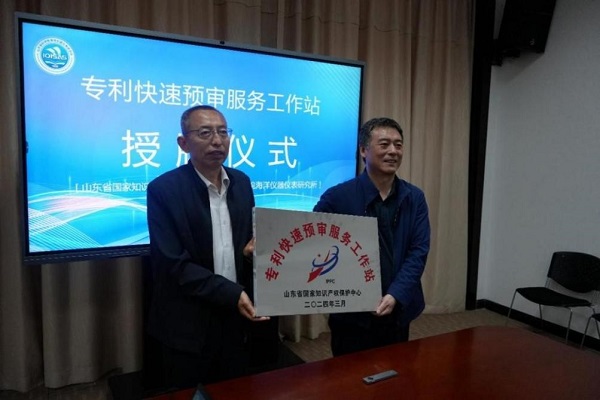 尹強民、孫繼昌為山東省科學院海洋儀器儀表研究所專利快速預審服務工作站揭牌