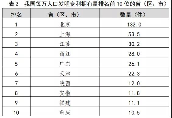 截至2019年底,我國(guó)國(guó)內(nèi)(不含港澳臺(tái))發(fā)明專利擁有量共計(jì)186.2萬(wàn)件,每萬(wàn)人口發(fā)明專利擁有量達(dá)到13.3件,提前完成國(guó)家“十三五”規(guī)劃確定的目標(biāo)任務(wù)。我國(guó)每萬(wàn)人口發(fā)明專利擁有量排名前3位的省(區(qū)、市)依次為:北京(132.0件)、上海(53.5件)、江蘇(30.2件)。