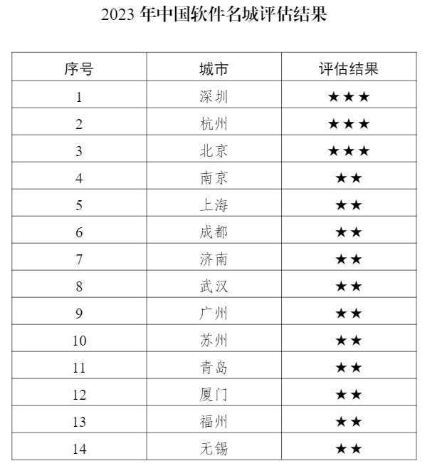 為深入貫徹國家軟件發展戰略,落實軟件規劃、行動計劃等產業政策,進一步擦亮中國軟件名城品牌,工業和信息化部組織開展2023年度名城評估工作。根據評估結果,青島市獲評二星級中國軟件名城,在14個名城中位列第11位,有關工作得到部領導和評估專家高度認可。深圳、杭州、北京獲評三星級名城。