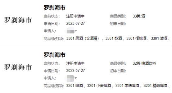 不出意外,有人已經開始對這個名字下手了,率先申請了32類和33類兩個類別,至于這個申請結果,大家覺得會準予注冊嗎?我們拭目以待。