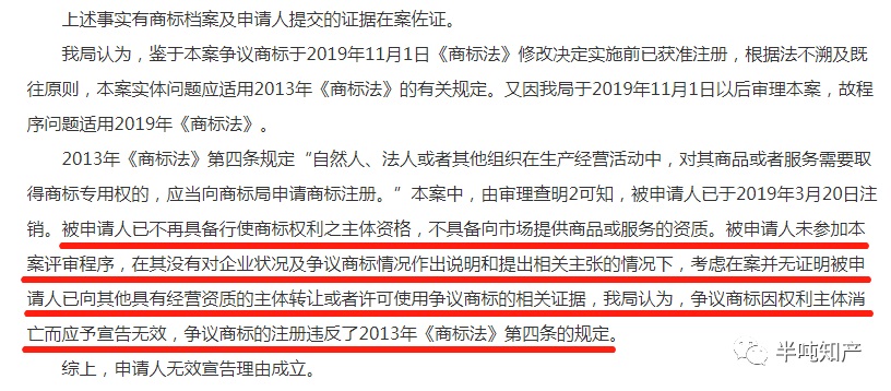 實務(wù)中,看到引證商標(biāo)權(quán)利人已注銷,一般在復(fù)審的時候會選擇對引證商標(biāo)提撤三,這樣引證商標(biāo)由于沒有提供商標(biāo)使用證據(jù)被撤銷,復(fù)審成功,但最近學(xué)習(xí)案例的時候,發(fā)現(xiàn)除了這個方法外,還可以對引證商標(biāo)提出無效宣告。