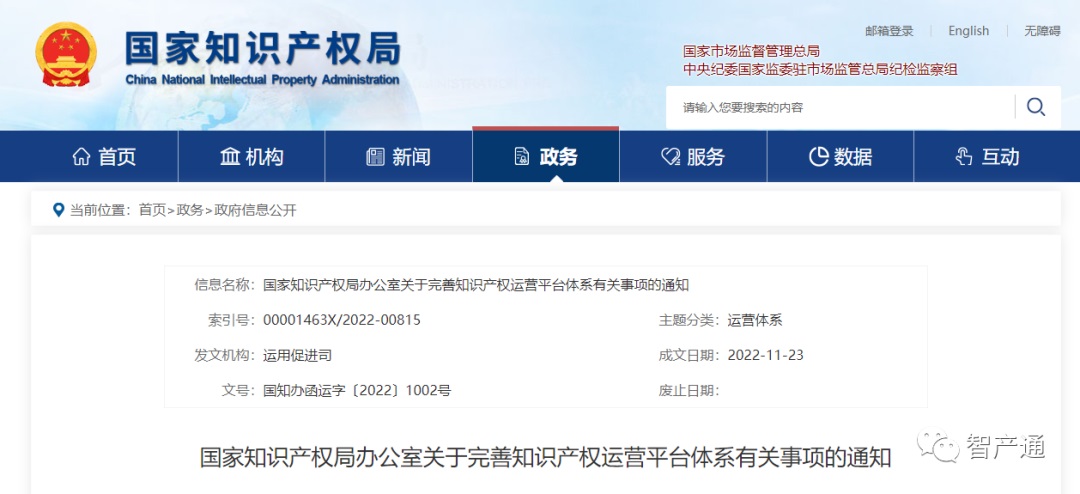 為深入貫徹落實黨的二十大精神,推進落實黨中央、國務院印發的《知識產權強國建設綱要(2021—2035年)》和國務院印發的《“十四五”國家知識產權保護和運用規劃》,將中辦、國辦印發的《建設高標準市場體系行動方案》關于“建設國家知識產權和科技成果產權交易機構”部署落實落地,按照《國家知識產權局關于促進和規范知識產權運營工作的通知》(國知發運字〔2021〕22號)要求,推進實施知識產權運營體系建設工程,在前期工作基礎上,進一步完善知識產權運營平臺體系,現將有關事項通知如下: