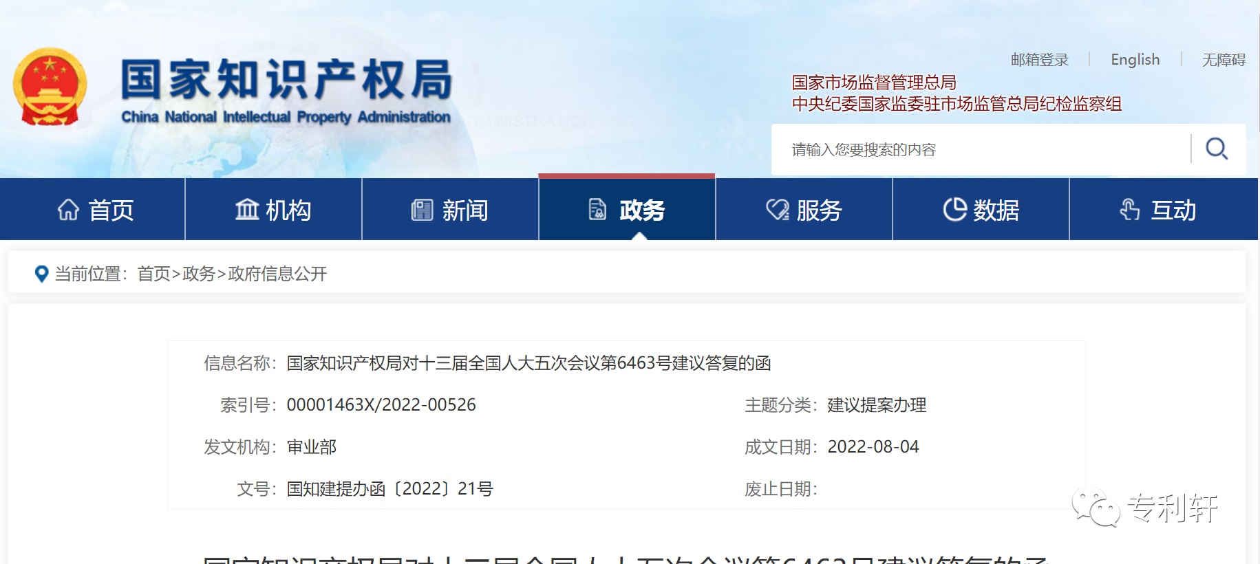 國家知識產權局對十三屆全國人大五次會議第6463號建議答復的函