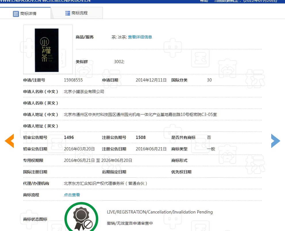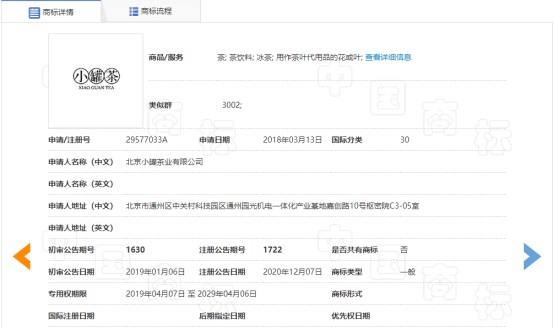 經過查詢我們可以看到,“小罐茶”已經成功注冊商標: