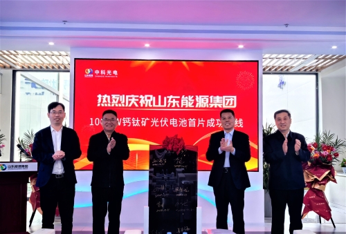 12月31日上午,我省首片大面積單結鈣鈦礦電池組件,在山東能源集團百兆瓦鈣鈦礦電池中試產線成功下線。省科技廳黨組書記、廳長孫海生,濟南市委常委、起步區黨工委副書記、管委會主任孫斌,山東能源集團黨委書記、董事長李偉出席活動并致辭。