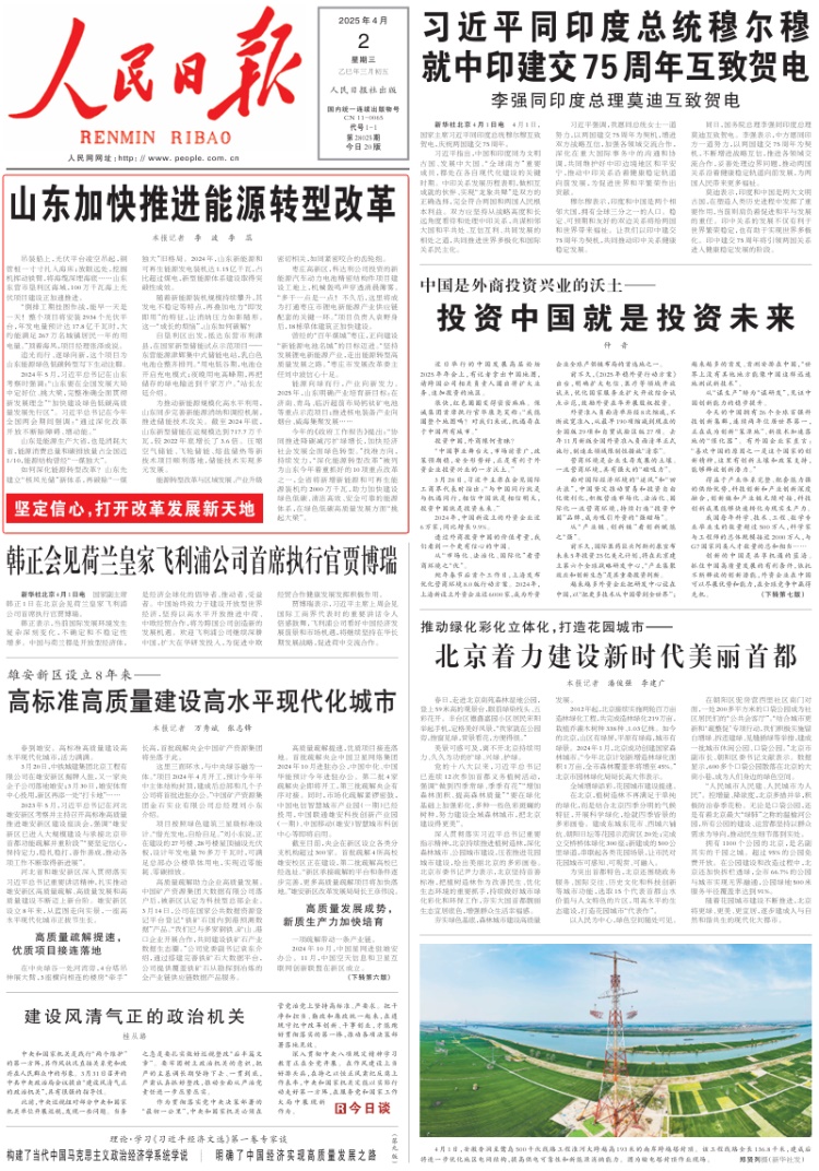 《人民日報》(2025年4月2日 1版)