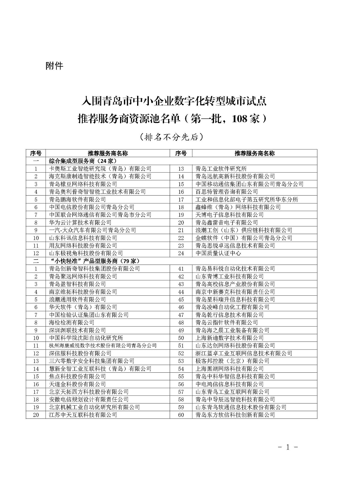 附件: 入圍青島市中小企業(yè)數字化轉型城市試點推薦服務商資源池名單(第一批)